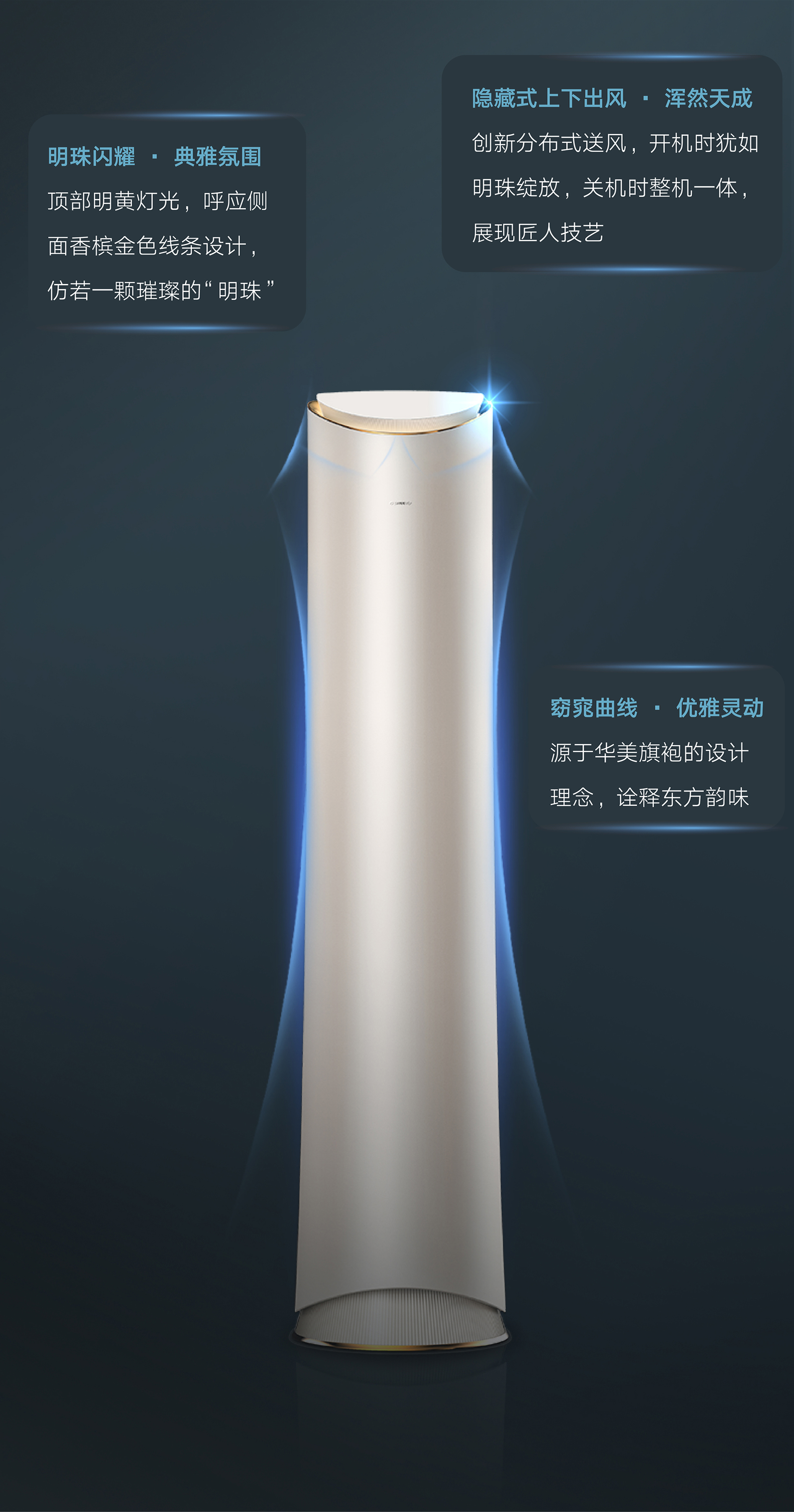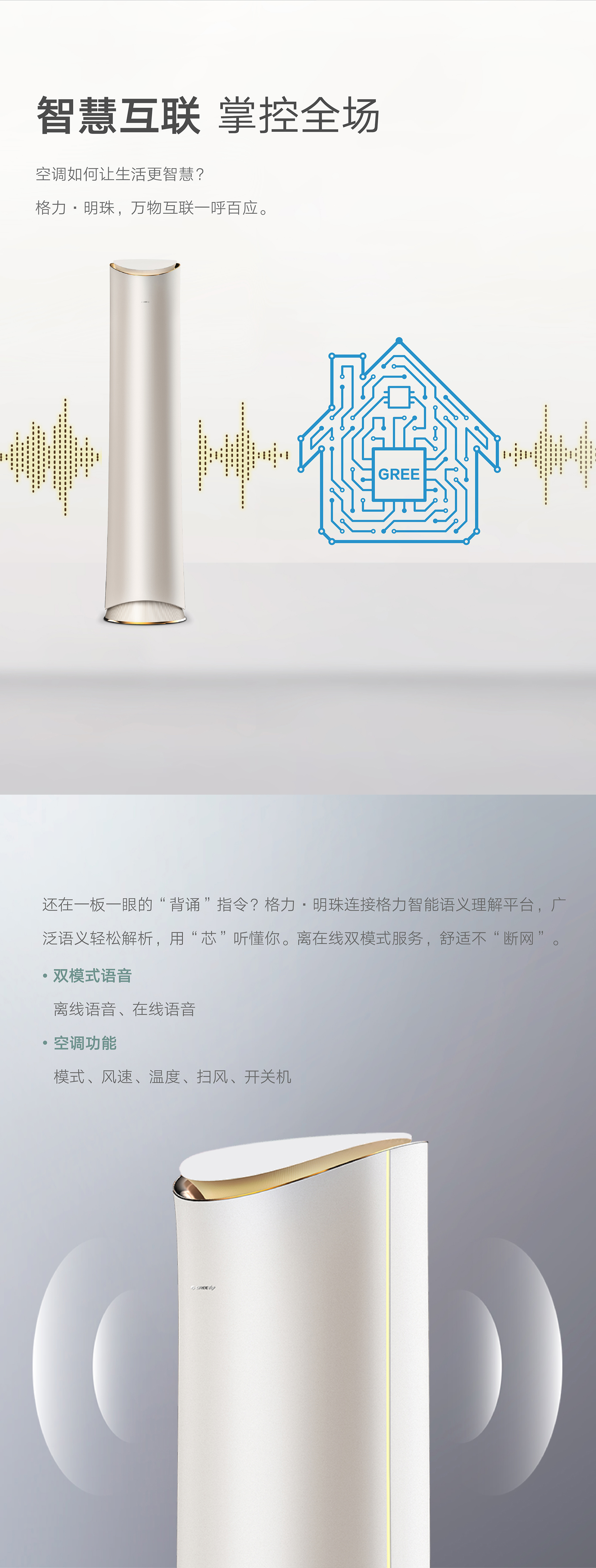 格力·明珠,明珠璀璨,風(fēng)華絕代。國際領(lǐng)先分布式送風(fēng)技術(shù),每個(gè)角落都是你想要的溫度。格力AI語音控制技術(shù),言出即行。