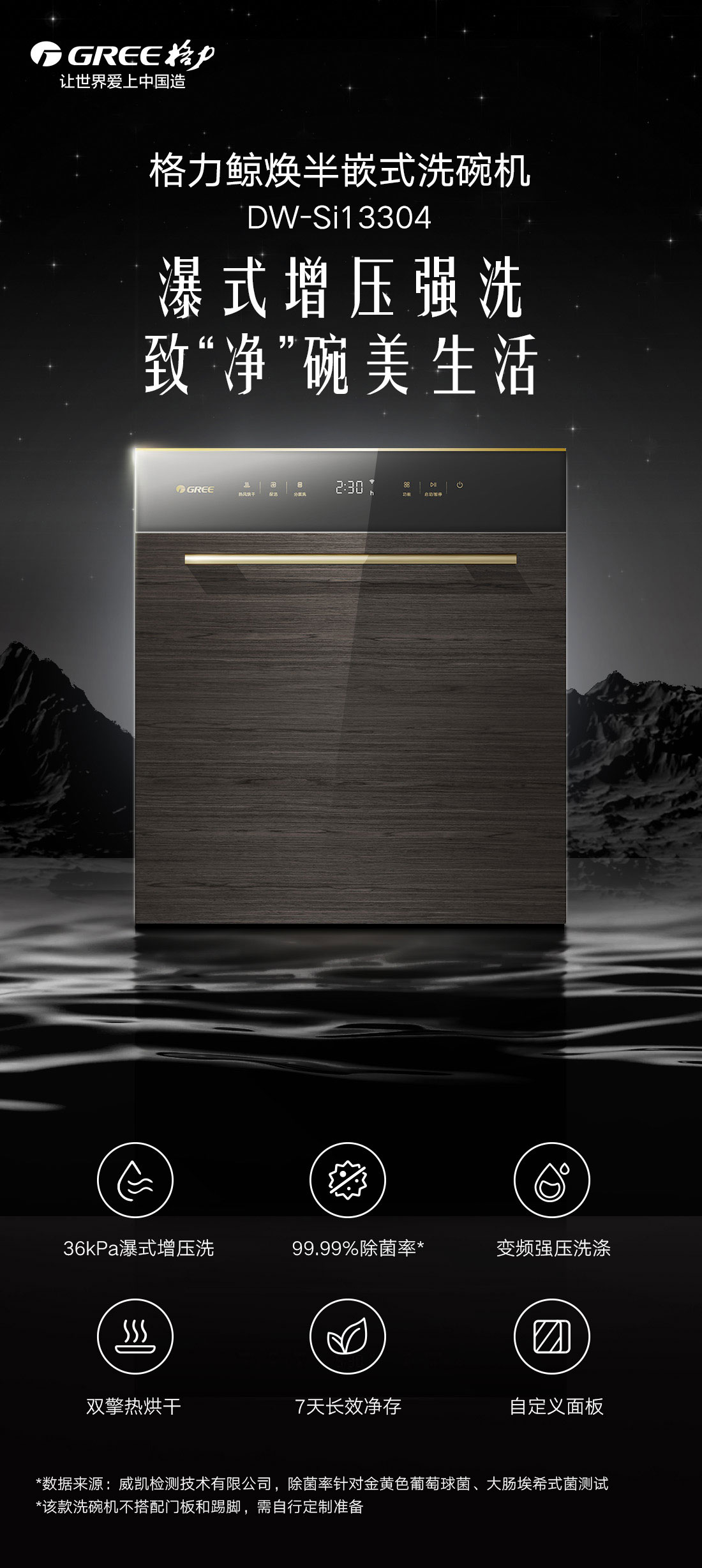 搭載瀑式增壓強洗科技,36KPa洗凈深層菌污,除菌率達99.99%;洗烘除存一體,存放7天也干爽