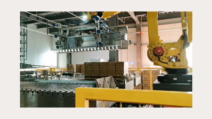 設(shè)計的技術(shù)、工藝和細節(jié)成熟領(lǐng)先,精廣實現(xiàn)了國內(nèi)油脂行業(yè)多線連體的機器人碼垛系統(tǒng),從行業(yè)普遍采用的氣缸抱具升級到伺服抱具,輸垛輸送從行業(yè)普遍采用的單雙鏈條輸送升級成雙鏈條驅(qū)動并加輥筒輸送使達到空垛輸送定位準確和滿垛輸送平穩(wěn)的效果。