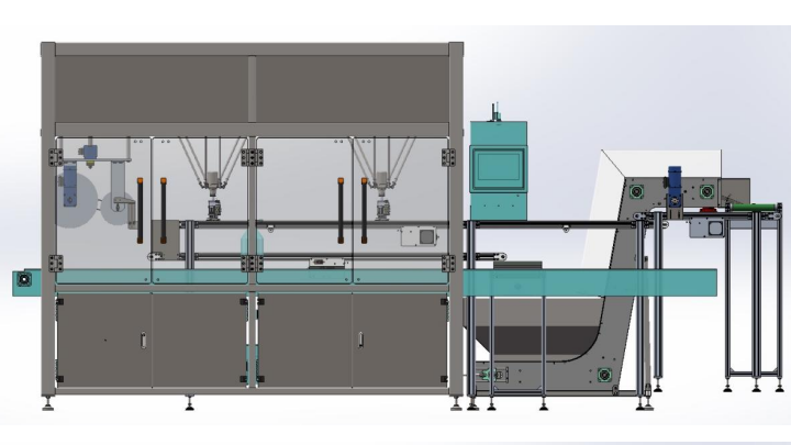 蜘蛛手機(jī)器人根據(jù)識(shí)別結(jié)果,迅速抓取并精準(zhǔn)套壓至瓶子指定位置,同時(shí)非目標(biāo)提手通過(guò)回收系統(tǒng)自動(dòng)返回儲(chǔ)料斗,實(shí)現(xiàn)循環(huán)再利用。